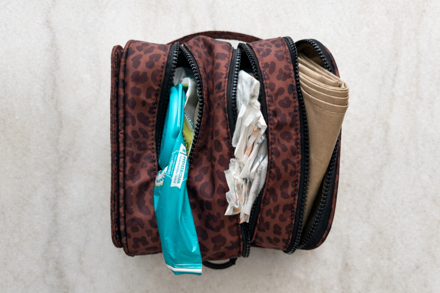 Whether it's tucked away in your tote or the trunk of your car- this grab and go pouch holds everything you need for diaper changes without the bulk and mess.